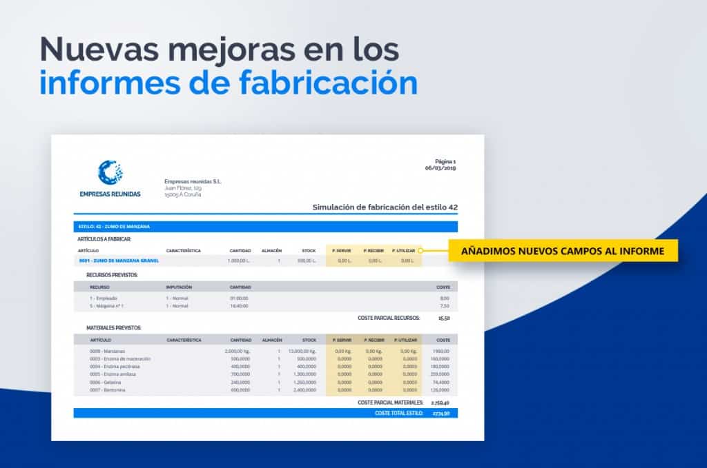 Uno de los módulos más importantes de nuestras soluciones, es el módulo de fabricación. Con él hemos conseguido solucionar la gestión de producción de cientos de empresas, que necesitan controlar todo el proceso productivo, planificar fases de producción, imputación de consumos, desviaciones de costes, control de personal y material, gestión documental, doble unidad de medida, entre otras muchas posibilidades, ayudándoles a lograr una fuerte ventaja competitiva, y un conocimiento total de sus manufacturas.
