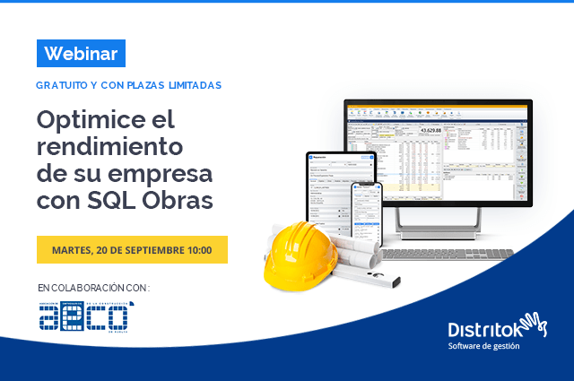 Gracias a esta experiencia y en colaboración con AECO tenemos el gusto de presentarles un nuevo webinar que se celebrará el 20 de septiembre de 10:00 a 11:00 de la mañana, y que hemos titulado: De la mano de AECO Huelva, optimice el rendimiento de su empresa con SQL Obras.
