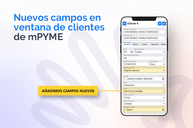 Una vez más, hemos querido mejorar la solución y añadir nuevos campos en la ventana de clientes, para que cada vez la aplicación de movilidad sea más parecida a la aplicación web.