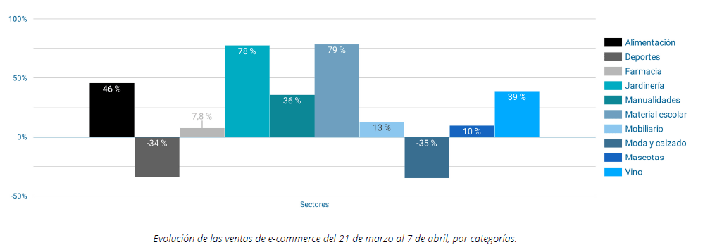 Durante los dos últimos meses, los consumidores están migrando hacia internet. Según el último estudio sobre impacto del coronavirus en negocios digitales presentado por Flat101, las ventas en el sector de alimentación se incrementaron un 218,5%, el sector electrónica mostró un incremento del +138.5%, el consumo de material deportivo ha aumentado un 22,6%, el de belleza un 31%… el comercio online se encamina hacia registros históricos.
