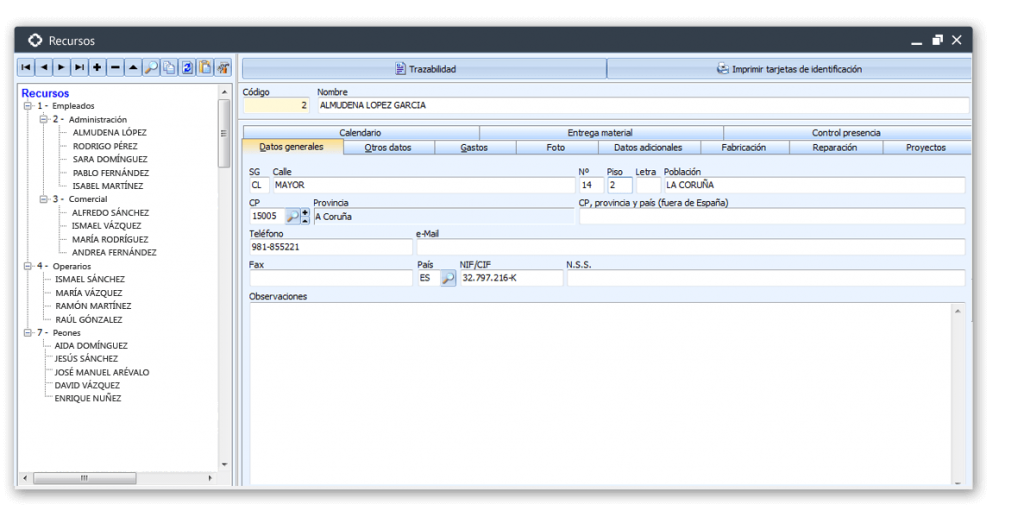 Genere y edite fichas para todos sus empleados, con todos sus datos detallados y organizados. Podrá agrupar cada empleado dentro de su plantilla por departamento.