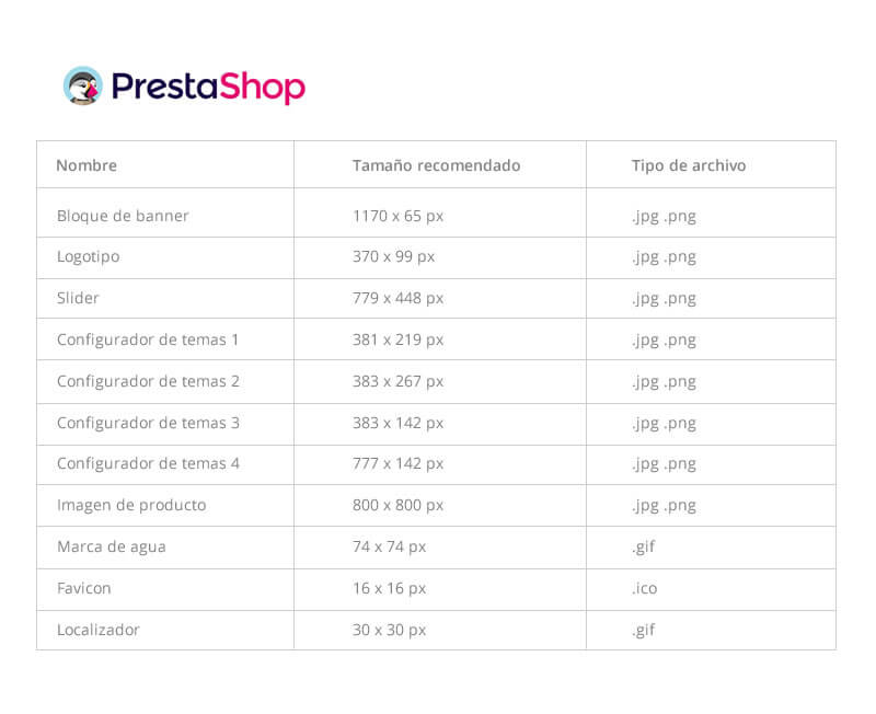 Le presentamos los tamaños de imagen que las plantillas más comunes de Prestashop utilizan y le dejamos estos archivos en formato Photoshop en descarga, para ayudarle a empezar a montar su tienda online o renovar sus reclamos y productos.