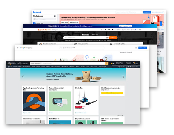 Algunos de los marketplaces más famosos del mercado online, son Amazon, Google Shopping, Facebook Marketplace o Alibaba, entre otros muchos.