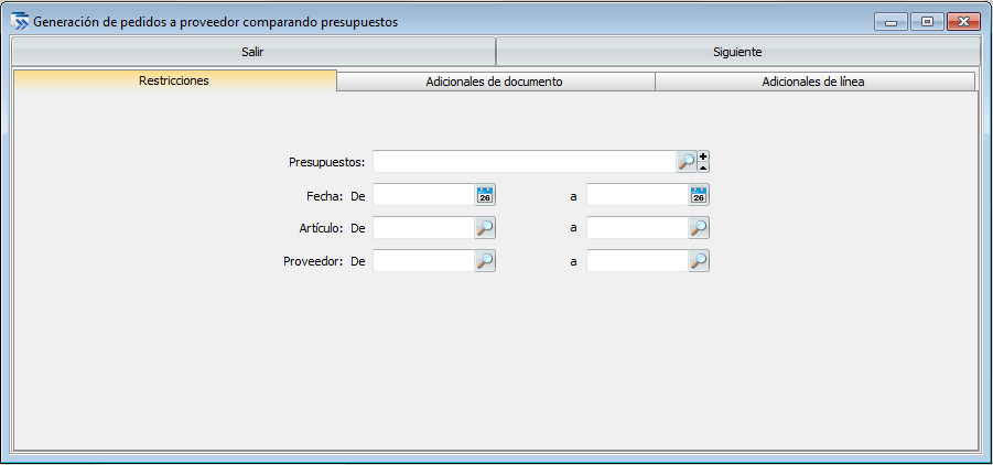 Usamos los campos disponibles en el programa de gestión para establecer una selección de los presupuestos a comparar.