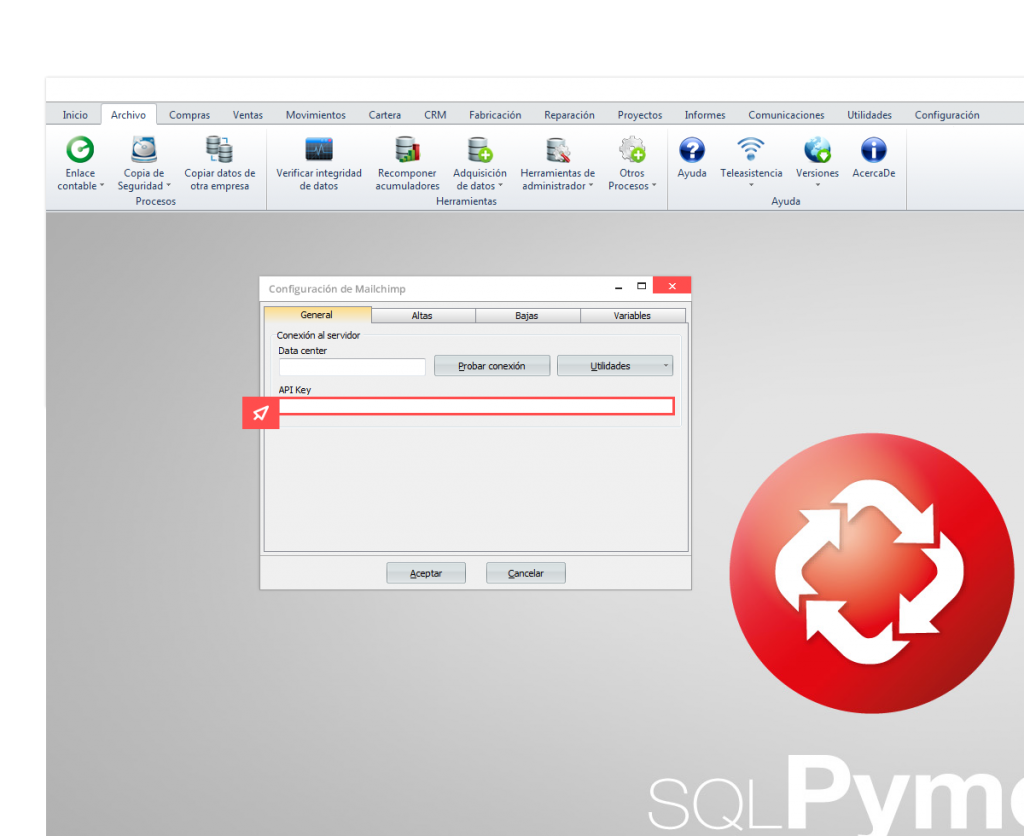 Para conectar nuestros programas de gestión con Mailchimp solo necesitamos disponer de la API Key que este servicio le proporciona y listo.