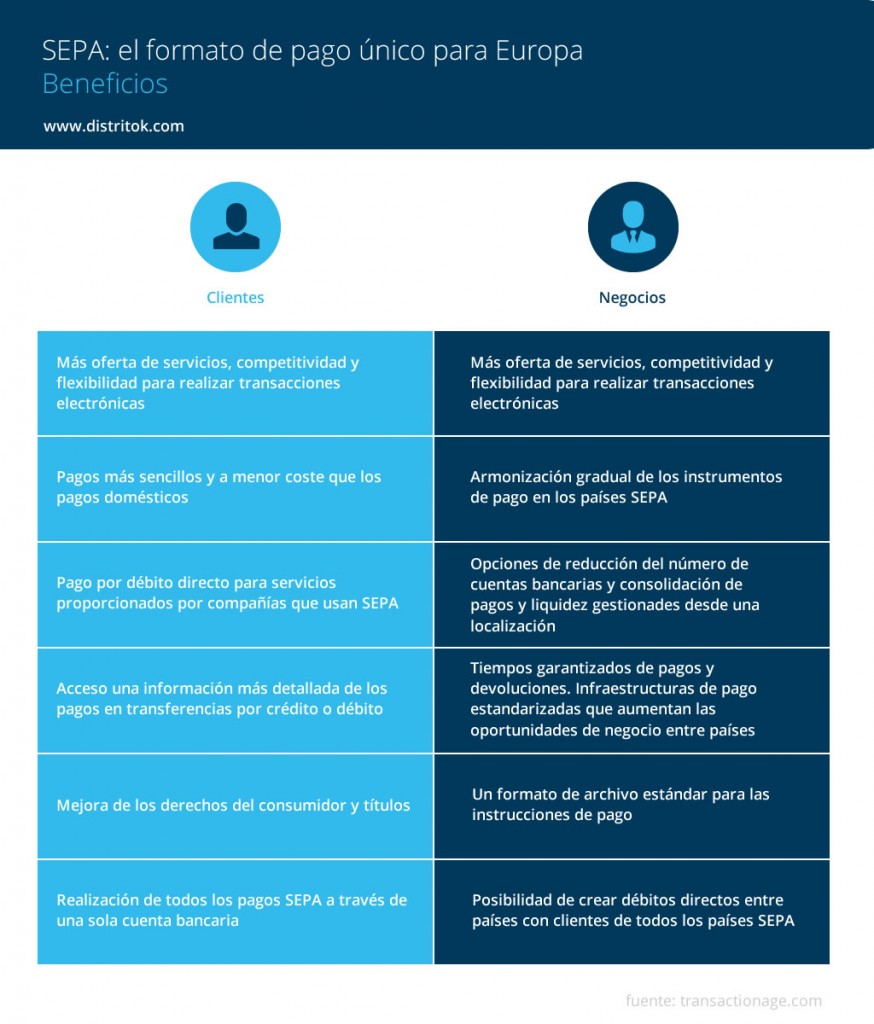 Mayor eficiencia mediante la centralización de pagos y cobros regionales. Mayor control y gestión de riesgos ya que los formatos de pago e interfaces bancarias se estandarizan. Mejora en la consulta y disponibilidad de efectivo. Reducción de efectos en cobros. Mayor accesibilidad a nuevos mercados. Disminución de diferencias en comisiones en toda Europa.