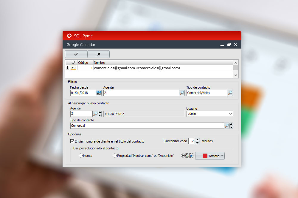 Por ello, hoy estamos orgullosos de presentar el nuevo módulo de sincronización de la agenda de nuestras aplicaciones con la plataforma líder de calendarios colaborativos: Google Calendar. Simplemente cree sus calendarios, asigne agentes así como tipos de contacto a cada uno y deje que nuestro software se encargue de gestionar la sincronización, de tal forma que sus empleados puedan consultarla, e incluso modificarla, desde cualquier dispositivo.
