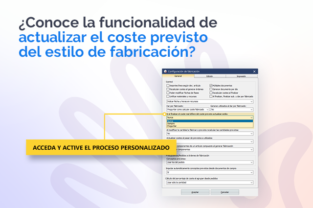 De la misma forma que cuando generamos las órdenes de fabricación desde pedido, se mira la el valor de la opción Conceptos previstos de la pantalla de Configuración de fabricación para determinar si la precedencia la tienen los Conceptos previstos, los Estilos de fabricación o si se van a usar ambos.
