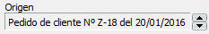 El campo Origen situado en la esquina superior derecha de la pantalla de Órdenes de fabricación. Este campo nos informa del documento que originó la orden de fabricación que se está visualizando en pantalla. Este origen puede ser otra fabricación o bien un Pedido de cliente.
