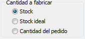 Si seleccionamos Cantidad del pedido el resultado sería el mismo que si generamos las fabricaciones desde un Pedido de cliente pero, si seleccionamos Stock o Stock ideal, las cantidades a fabricar se verán alteradas en el caso que el stock o el stock ideal del artículo sean distintos de cero.