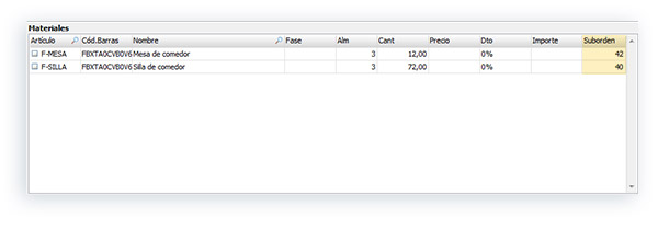 Si en vez de indicarnos que el origen es un documento de venta se nos informa de que el origen es otra orden de fabricación, lo que estaremos viendo en pantalla será una suborden de fabricación.