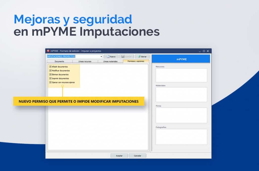 mPYME es la solución de movilidad de nuestras aplicaciones, en tiempo real, para todo tipo de dispositivos móviles. Una de sus opciones, es la posibilidad de hacer imputaciones de recursos. De esta manera, los operarios pueden acceder con su usuario y contraseña e imputar horas o materiales. Cada usuario puede tener asociados uno o varios …