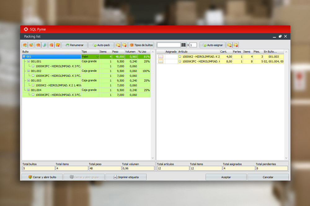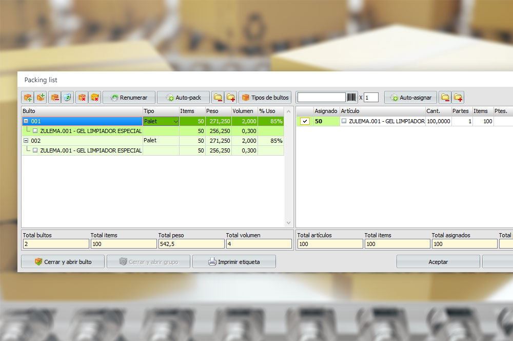 Más información sobre la gestión de bultos (Packing List) y vídeo informativo