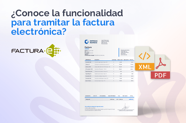 La factura electrónica incluida en nuestro ERP permite emitir facturas con los requisitos técnicos necesarios, para poder trabajar con las administraciones públicas o empresas privadas.