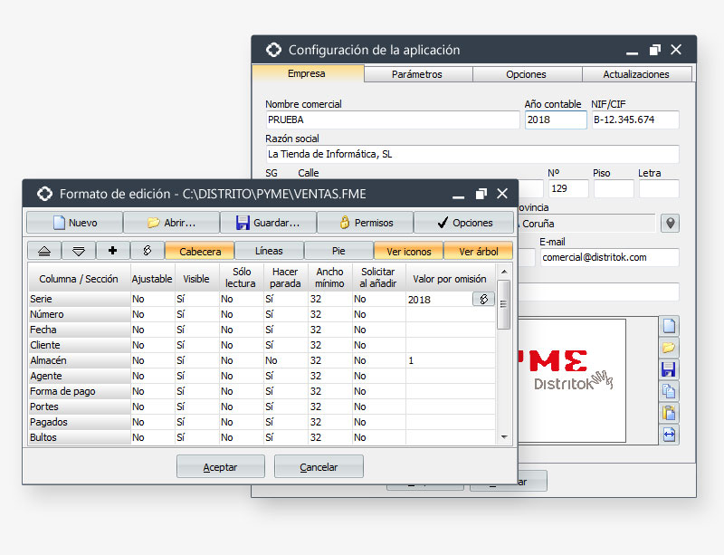 Para que tome esta serie automáticamente en los documentos, pondremos en el formato de edición de los documentos, la serie por omisión. Para ello, desde los documentos (por ejemplo factura), pulsaremos el botón derecho del ratón mostrándose un menú en el que seleccionaremos la opción “configurar”, accederemos al formato de edición y en la casilla de serie, colocaremos la nueva serie que queremos que ponga por defecto.
