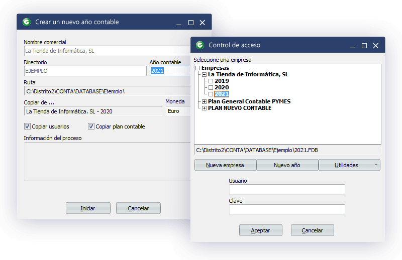 Si le damos a la opción de nuevo año nos marcará por defecto las opciones de copiar los usuarios y el plan contable, y le daremos a iniciar.