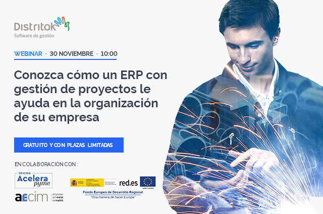 Desde la Oficina Acelera Pyme y en colaboración con AECIM, Distrito K tiene el gusto de presentarle un nuevo webinar al que hemos titulado “Conozca cómo un ERP con gestión de proyectos le ayuda en la organización de su empresa”, para conocer qué es un ERP y cómo puede ayudarle en su negocio, que se celebrará el miércoles 30/11/2022 a las 10:00 de la mañana.