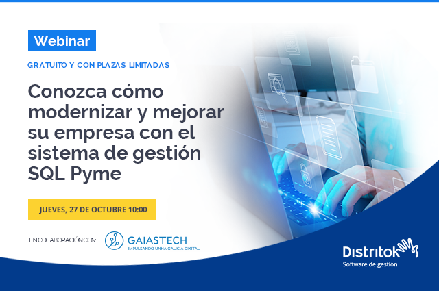 Hoy queremos presentarles un nuevo evento que se celebrará el jueves 27/10/2022 a las 10:00 de la mañana, y que hacemos en colaboración con GAIASTECH, al que hemos titulado: Conozca cómo modernizar y mejorar su empresa con el sistema de gestión SQL Pyme.