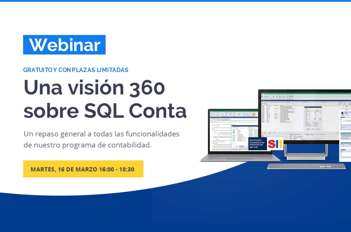 SQL Conta es nuestro programa de contabilidad y gestión fiscal integrado con la Agencia Tributaria. Nuestra solución es la mejor contabilidad del mercado y permite múltiples procesos y funcionalidades, por eso con nuestro nuevo servicio de cursos a través de webinar, queremos profundizar en todas sus posibilidades.