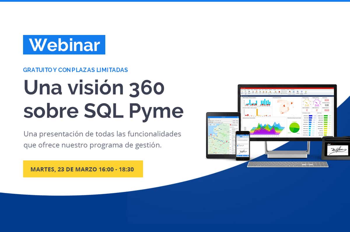 El martes 23 de marzo, en horario de 16:00 a 18:30, realizaremos un webinar que pretende ser un repaso general a todas las funcionalidades de SQL Pyme, si está interesado en asistir, puede reservar plaza haciendo clic aquí. Es gratuito y con plazas limitadas.